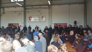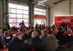 Bürgermeister Kretschmann eröffnete im Anschluss die Feier mit einem Rückblick über die Entwicklung von der Planung bis zur Fertigstellung des neuen Gebäudes. Begleitet vom Applaus der zahlreichen Besucher übergab Herr Kretschmann den symbolischen Schlüssel an Stadtbrandinspektor Markus Kölsch und die Wehrführerin Sandra Czabla. Die Grußworte der Gäste rundeten den offiziellen Teil des Tages ab.