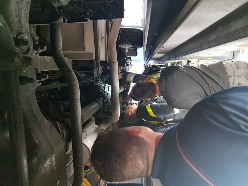 An den Fahrzeugen wurde unter Anleitung der Ausbilder die Befreiung von eigeklemmten Personen mit hydraulischem Rettungsgerät aber auch mit einfachsten Hilfsmitteln geübt.