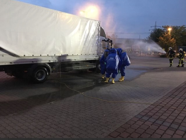 Donnerstagabend, ein Lkw mit heikler Ladung steht auf einem Parkplatz im Gewerbegebiet Goddelau. Bei Verladearbeiten wurde ein Fass mit Gefahrgut beschädigt und muss fachgerecht gegen weiteren Austritt gesichert und anschließend geborgen werden. Das bedeutet den Einsatz der Stadtteilfeuerwehren Goddelau und Wolfskehlen, die für solche Einsätze speziell ausgebildet sind.