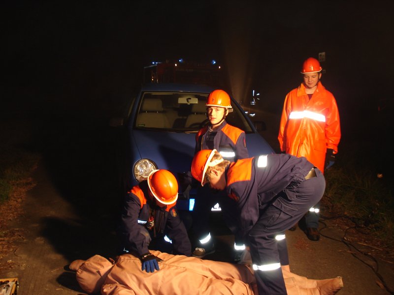 Als zu rettende Personen kamen hierbei nicht nur Übungspuppen, sondern auch der ein oder andere Teilnehmer zum Einsatz, was für einige der Einsatzkräfte eine ganz neue Erfahrung auf der anderen Seite des Geschehens war.