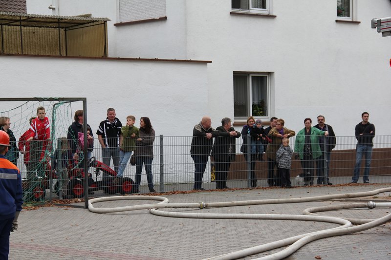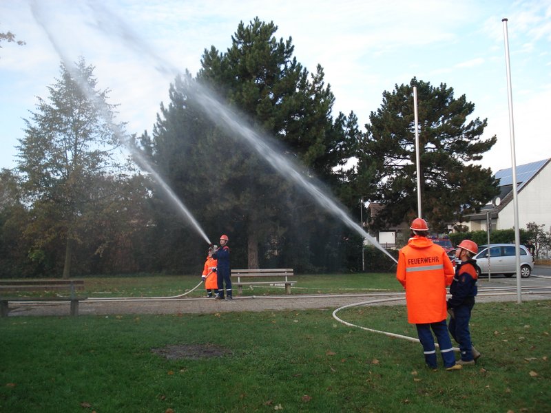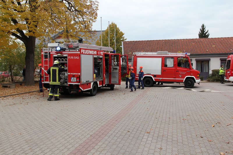 Dies ist der Auftakt zur gemeinsamen Übung aller Riedstädter Jugendfeuerwehren. Innerhalb weniger Minuten treffen diverse Löschfahrzeuge aus den fünf Stadtteilfeuerwehren am Übungsobjekt ein und beginnen mit der Abarbeitung diverser Aufgaben: