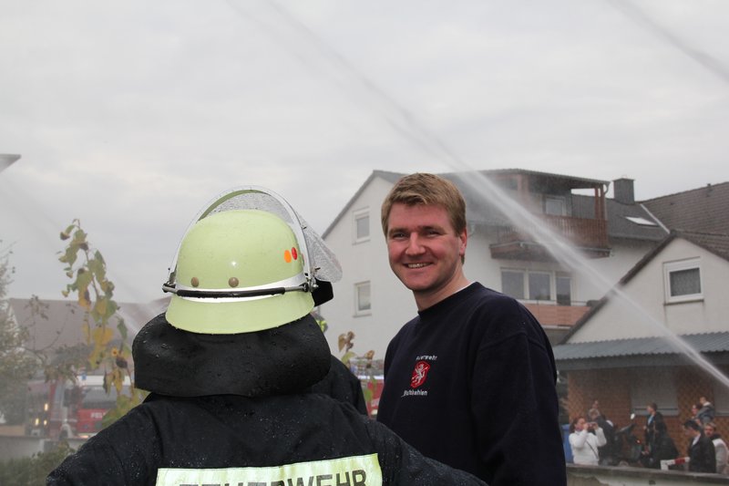 Nach einer knappen dreiviertel Stunde heißt es schließlich „Feuer aus!“ und die Aufräumarbeiten können beginnen, ehe man sich anschließend am Gerätehaus der Feuerwehr Erfelden trifft, um gemeinsam den Nachmittag mit einem gemeinsamen Essen und Getränken ausklingen ließ.