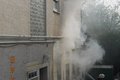 Bei Eintreffen an der Einsatzstelle war aus mehreren Fenster des Gebäudes stark austretender Rauch zu erkennen.