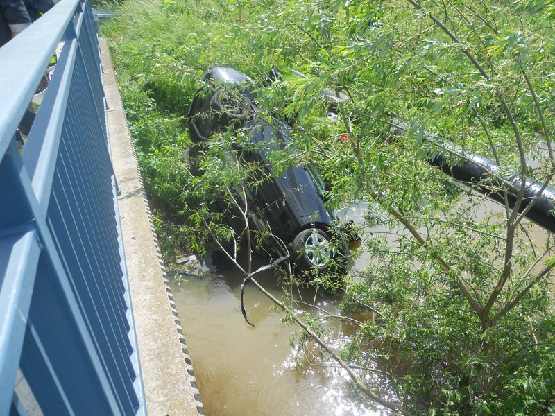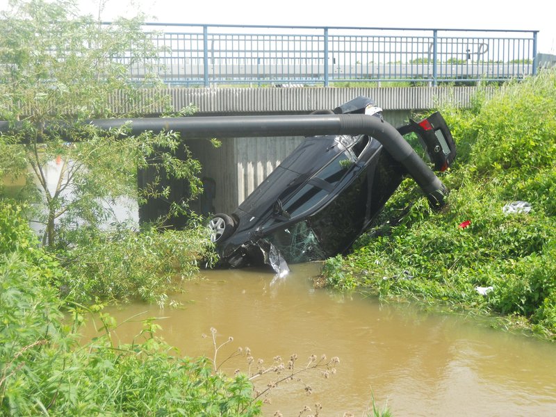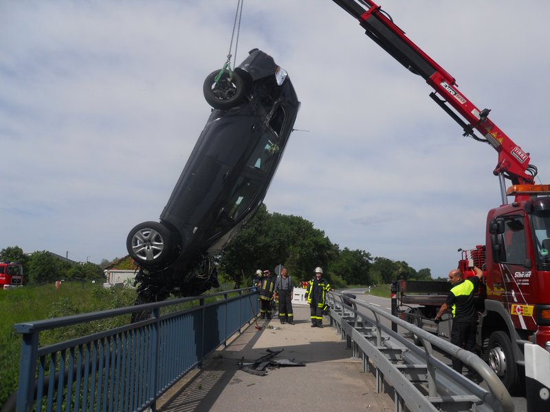 Ein PKW hatte war auf der K158 in Höhe der Schwarzbachbrücke von der Fahrbahn abgekommen und in den Schwarzbach gestürzt.