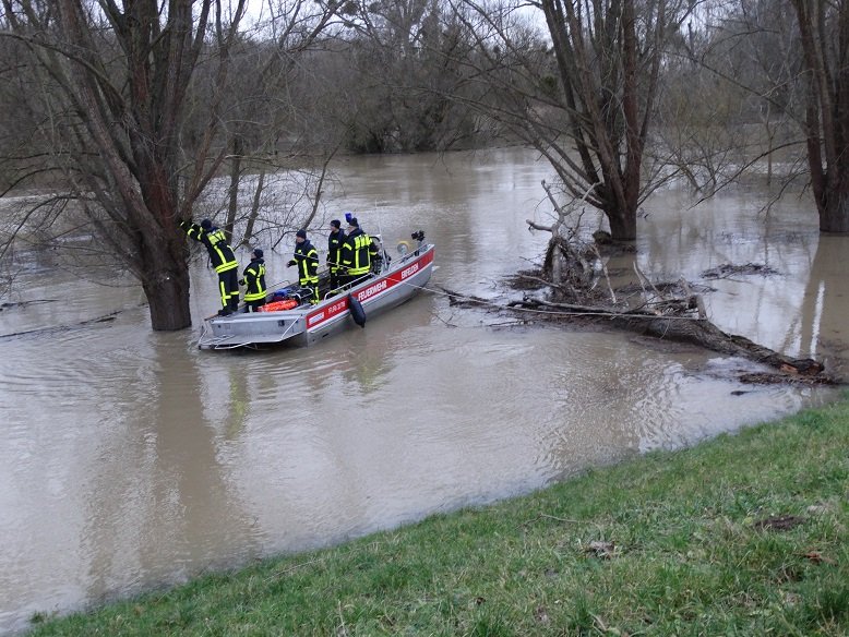 Der erste Einsatz im neuen Jahr führte uns an die Martin-Roth-Brücke in Erfelden. Aufgrund des Hochwassers hing eine große Menge Treibgut, u.a. große Baumstämme, am Brückenpfeiler der Altrheinbrücke fest. Da u.U. Gefahr für Boote und Anleger bestand, wurde nach Absprache zwischen Feuerwehr und Wasserschutzpolizei entschieden, die großen Baumstämme wegzuziehen. Hierzu kam das Mehrzweckboot aus Erfelden, sowie die Seilwinde des HTLF aus Leeheim zum Einsatz.