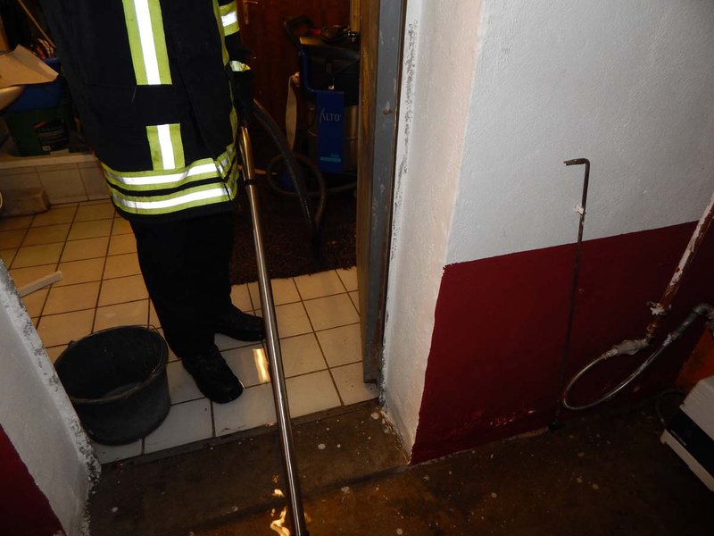 Im Keller eines Wohnhauses kam es zum Wasseraustritt. Das Wasser wurde mittels Wassersauger aufgenommen.