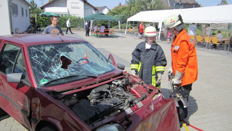 Am Infostand über die Arbeit der aktiven Sparten der Feuerwehr konnten sich Jugendliche und Eltern ein Bild über die Jugendarbeit im Verein machen und einmal die Ausbilder und Betreuer des Nachwuchses persönlich kennenlernen. „Häufig wurden tiefgehende Fragen gestellt oder die Gelegenheit genutzt, auch einmal selbst Hand an die Geräte der aktiven Wehr oder an die Instrumente des Spielmannszuges zu legen“ berichten Jugendwart Lars Löcke und Spielmannszugführer Karl-Ludwig Ewald. Besonders groß war das Interesse am hydraulischen Rettungsgerät der Feuerwehr, mit dem Verletzte aus verunfallten Fahrzeugen befreit werden können. Hier bestand für die Gäste die Möglichkeit die Geräte eigenhändig an einem Alt-Fahrzeug auszuprobieren. Alles unter fachmännischer Anleitung der Wehrleute und natürlich mit der entsprechenden Schutzausrüstung. Auch die Erkundung der großen Drehleiter der Feuerwehr Griesheim war ein Besuchermagnet.