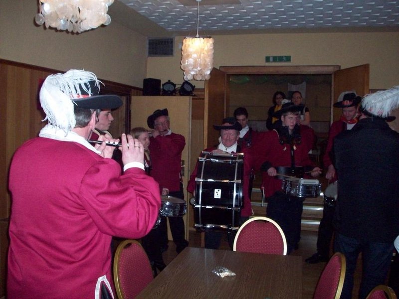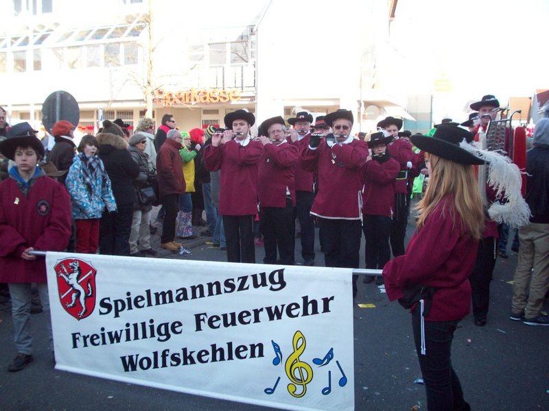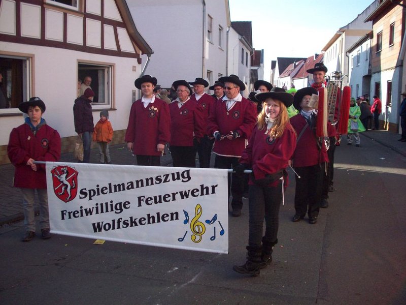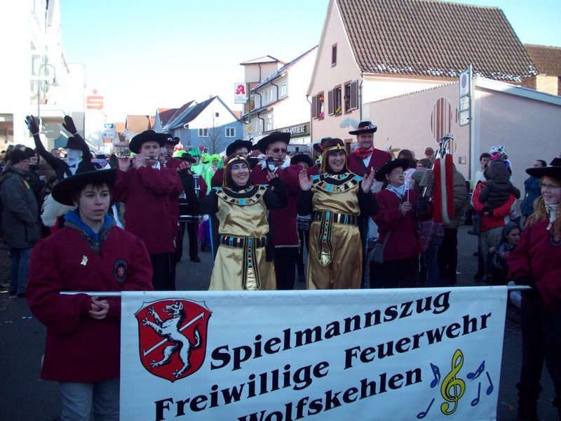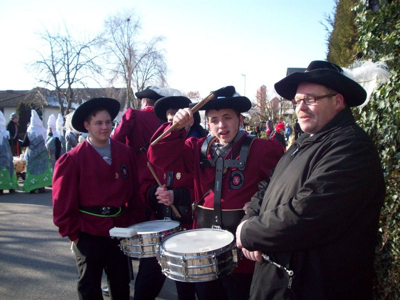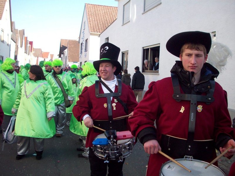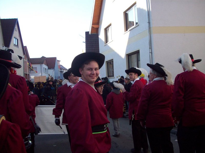 Gemeinsam mit den Fastnachtern des KCV fuhr man in einem Bus nach Büttelborn. Die Musiker trotzen der eisigen Kälte und zogen mit dem "närrischen Lindwurm" durch die Büttelborner Straßen. Der herrliche Sonnenschein lockte viele Tausend Besucher an, die am Straßenrand den Motivwagen und Fußgruppen applaudierten und zur Musik tanzten und sangen. Für die Musiker ist es immer wieder ein tolles Gefühl, wenn die Zuschauer die Stimmung aus dem Zug heraus aufnehmen. Den Abschluss gestaltete man "traditionell" in der Gaststätte "Zum Löwen".