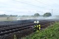 Nach kurzer Zeit war der Brandherd gefunden und es wurden Löschmaßnahmen eingeleitet. Ca. 30m² Böschung standen mit starker Rauchentwicklung in Flammen. Der Zugverkehr wurde mit verminderter Geschwindigkeit fortgeführt.