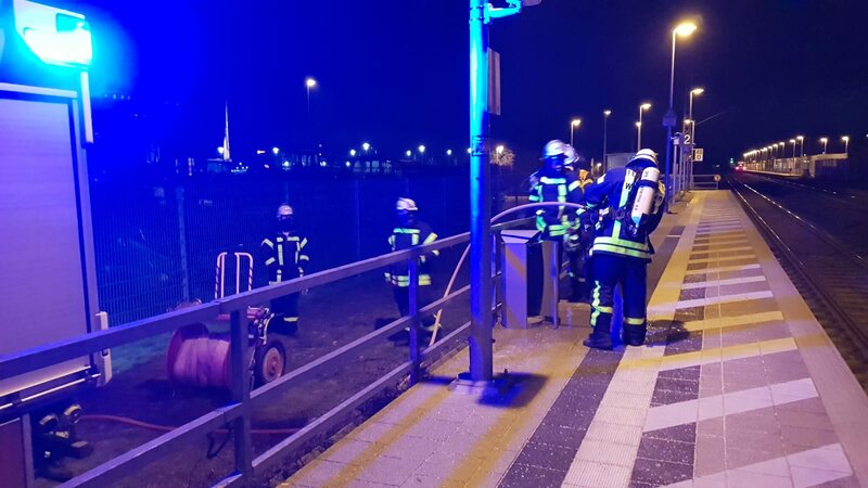 Die FFW wurde am 09.01. um 20:17 Uhr alarmiert. Am Bahnsteig Gleis 2 wurde ein brennender Müllbehälter gemeldet. Vor Ort wurde der Behälter mit dem Schnellangriff und dem Wasservorrat aus dem HLF 20 abgelöscht. Im Einsatz bzw. Bereitschaft im Gerätehaus waren 26 Einsatzkräfte. Einsatzende 21:08 Uhr.
