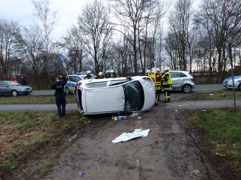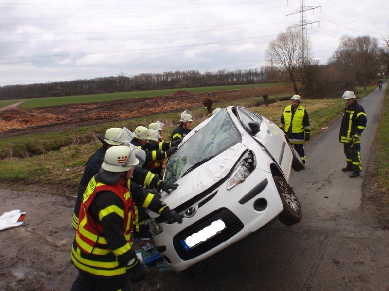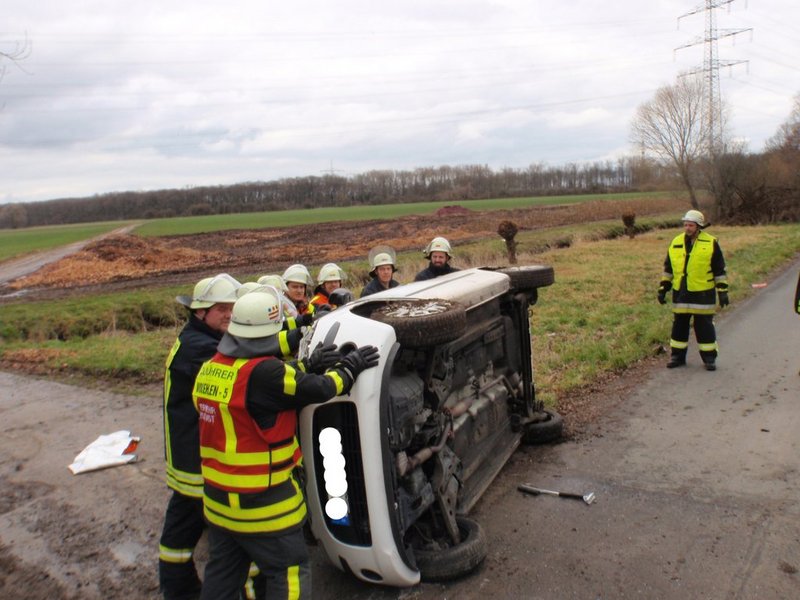 Zunächst bestand Unklarheit über den genauen Unfallort auf der B26. Dennoch konnten die Einsatzkräfte aus Wolfskehlen und Goddelau den Einsatzort Höhe Petershof schnell erreichen. Rettungsdienst und Polizei waren bereits vor Ort. Die PKW-Fahrerin war bereits aus dem auf der Seite liegenden PKW befreit. Die Feuerwehr klemmte die Batterie ab, stellte das Fahrzeug wieder auf die Räder und konnte nach Reinigung des Radweges wieder die Rückfahrt antreten. Im Einsatz war die FF Wolfskehlen mit 12 Einsatzkräften, die Feuerwehr Goddelau, der TE-Dienst der FF Riedstadt, Polizei und Rettungsdienst. Einsatzende gegen 14.45 Uhr.