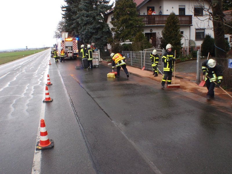 13 Einsatzkräfte waren mit HLF, LF 8 und dem Anhänger ausgerückt, um die Ölspur zu beseitigen. Einsatzende war 16.37 Uhr.