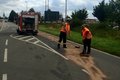 Aufgabe der Feuerwehr war die Sicherung der Einsatzstelle und die Aufnahme der Ölspur. Der Verursacher hatte selbst die Feuerwehr alarmiert und sein Fahrzeug abgestellt, als er den Defekt bemerkte. Die Fahrbahn wurde nach Abschluss der Reinigungsarbeiten von der Polizei freigegeben. Im Einsatz waren die 3 Einsatzfahrzeuge der FFW mit dem Mehrzweckanhänger und 18 über Funkmelder alarmierte Einsatzkräfte. Der Einsatz war gegen 15.15 Uhr beendet.