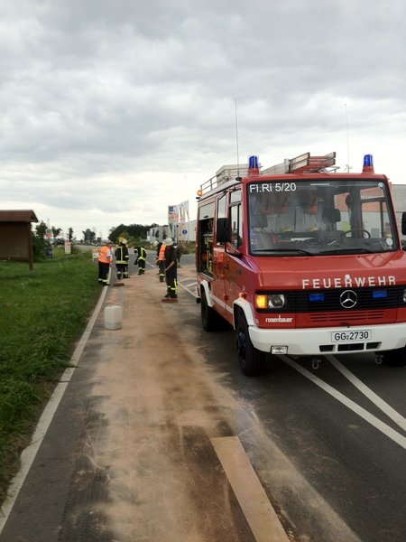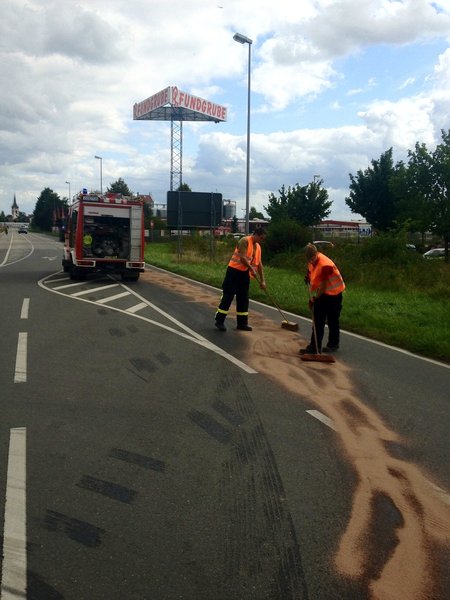 Am Samstag, den 15. September wurde die FFW um 13.25 Uhr ins Industriegebiet West gerufen. Entlang der Albert-Einstein-Straße und Oppenheimer-Straße verursachte ein defektes Fahrzeug eine ca. 100m lange und 1m breite Ölspur.